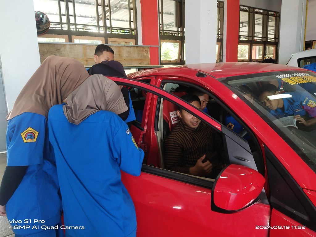 Suasana praktek di bengkel Program keahlian Teknik Kendaraan Ringan .