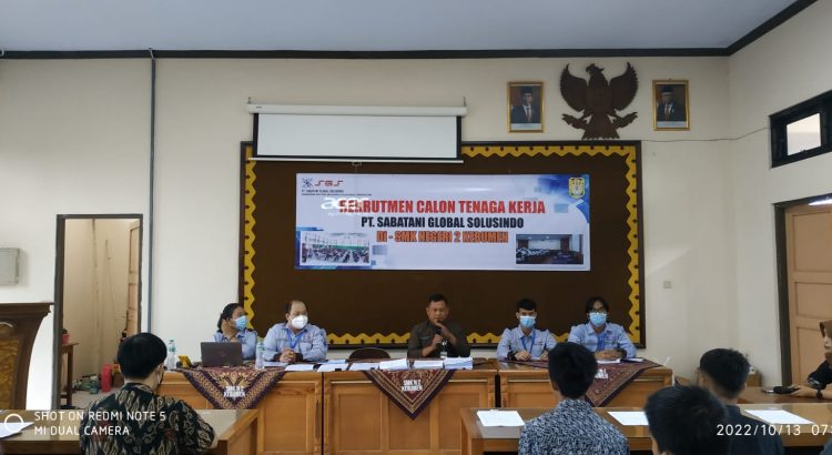 KEBUMEN, SMK Negeri 2 Kebumen, Kamis, 13 Oktober 2022 sebanyak 70 alumni tahun 2022 SMK Negeri 2 Kebumen mengikuti rekrutmen dari PT SABATANI GLOBAL SOLUSINDO.