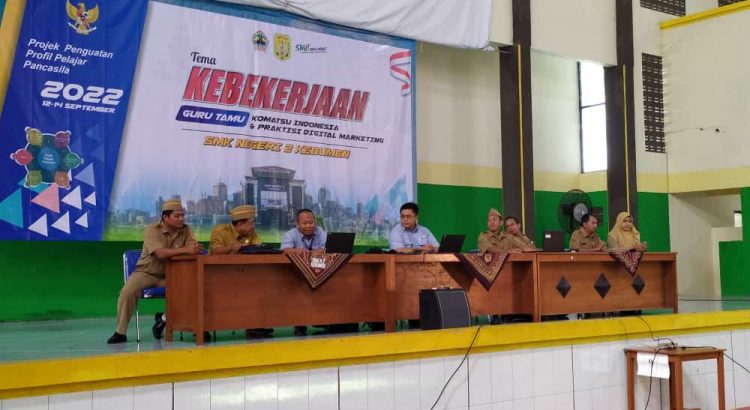 KEBUMEN, SMK Negeri 2 Kebumen, pada tanggal 12-14 September 2022 bertempat di GOR kebanggaan SMK Negeri 2 Kebumen berlangsung Kegiatan untuk mengimplementasi Kurikulum Merdeka dengan melaksanakan kegiatan Projek Penguatan Profil Pelajar Pancasila. Kegiatan P5 kali ini dengan tema”KEBEKERJAAN’. Kegiatan berlangsung selama 3 hari, dengan 2 hari mengundang nara sumber dari PT Komatsu Indonesia dan 1 hari yakni tanggal 14 September mengundang praktisi Digital marketing, mas Yudi Sutrisna.
